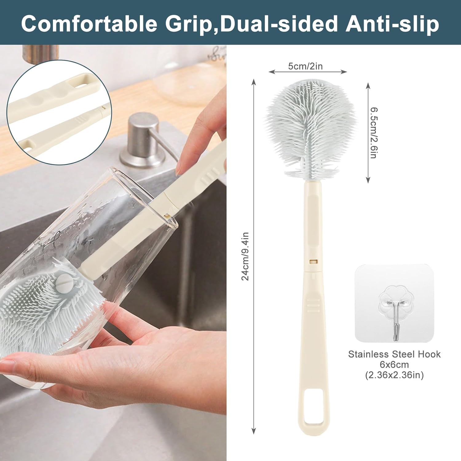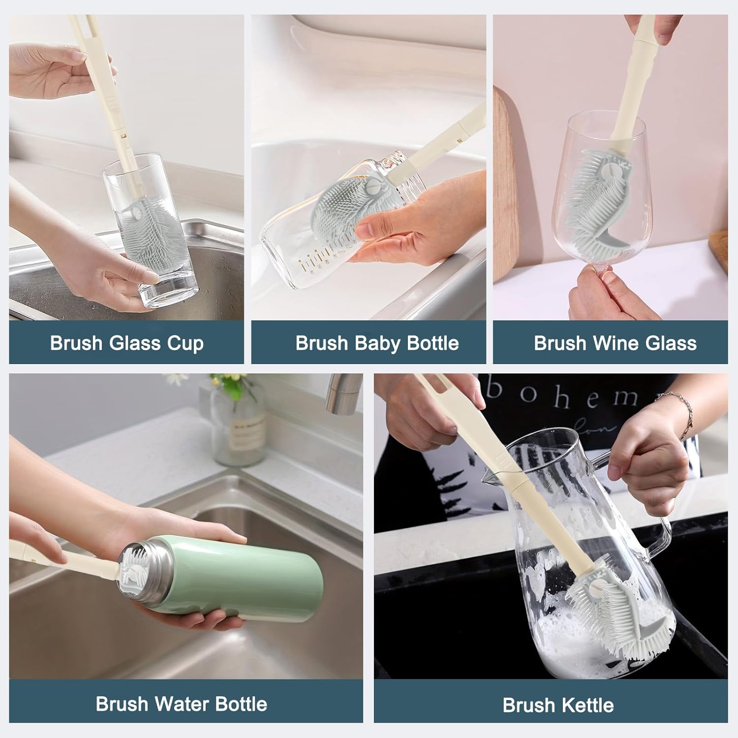 360° No-Dead-Corner Silicone Cleaning Brush with Foldable Head