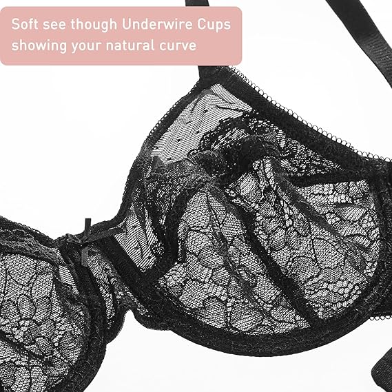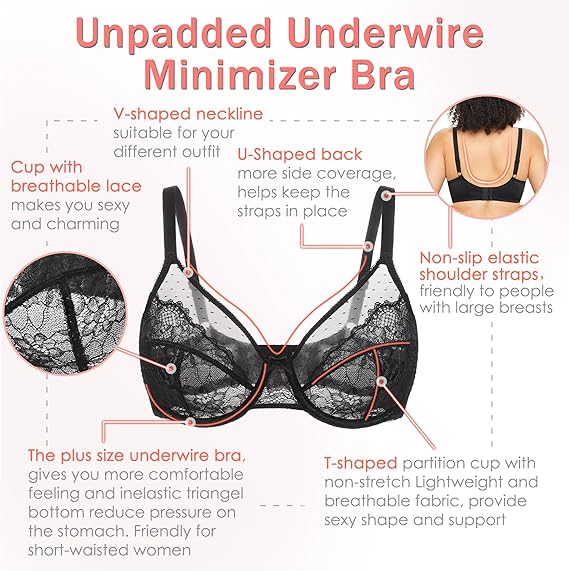Full Coverage Plus Size Comfortable Breathable Mesh Floral Lace Underwire Unlined Unpadded Minimizer Cup