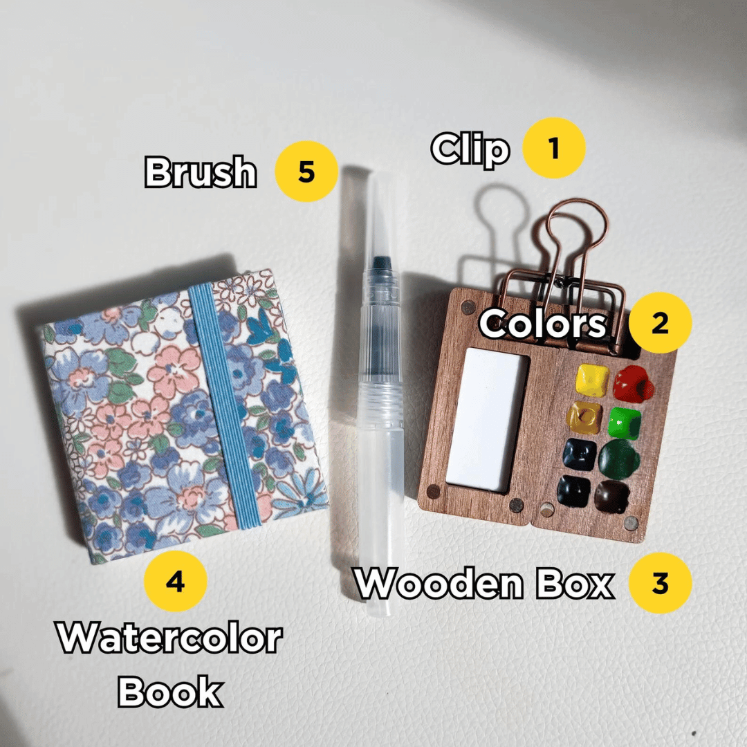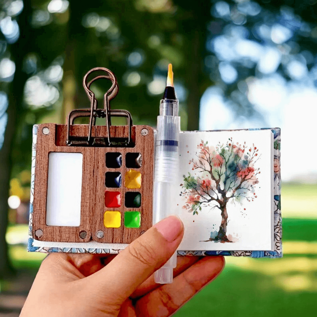 🔥Walnut 8 Grid Paint Box+1 Set of paints(12 Colors)+1 Watercolor Book (20 Sheets)+1 Metal Clip+1 Watercolor Brush+1 Gift Box