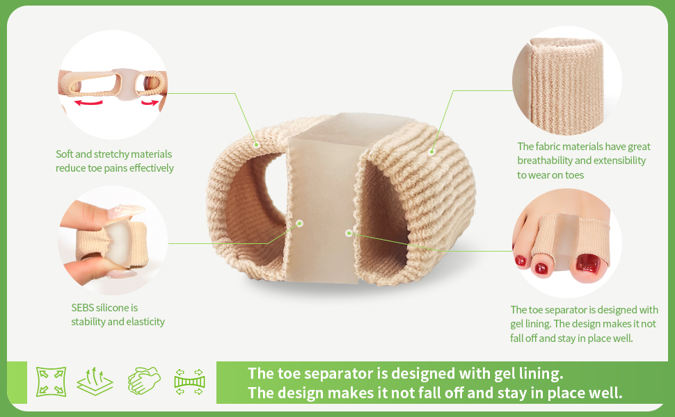 Cushion Foot Pain:These toe separators gently realign the toes, promoting proper alignment and reducing friction between toes. Featuring built-in bunion protectors, these toe separators offer added cushioning and protection for painful bunions.
