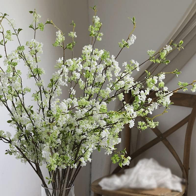 💟【Package included】Each pack includes 10 White Flowers Snow Willow Branches, each measuring 20 inches in length. Every branch has smaller branches, Green Leaves and White Flowers. Please note that the vase is not included.