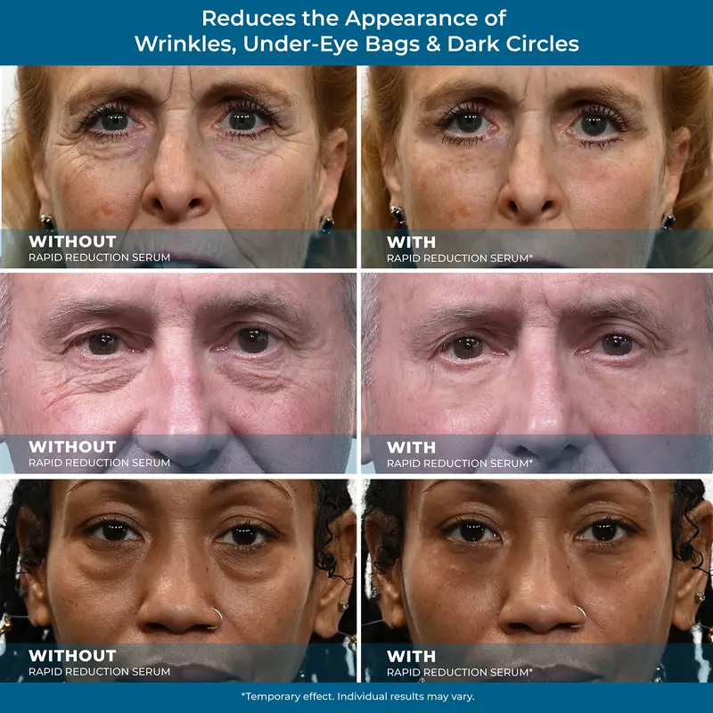 POWERFUL ANTI-AGING FORMULA:Our Rapid Reduction Serum harnesses the power of silicate minerals derived from shale clay to create a temporary skin tightening layer on your skin that lifts, tightens and smooths the skin for a more youthful appearance.Specially formulated to target the delicate skin around the eyes.